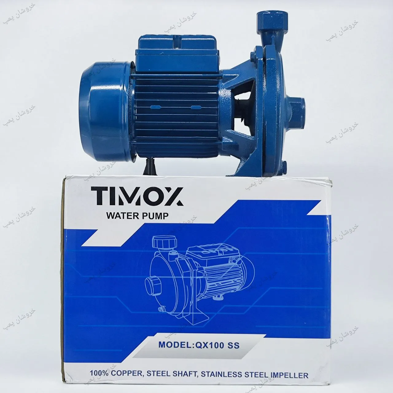 پمپ آب یک اسب بشقابی تیموکس QX100 SSپمپ آب یک اسب بشقابی تیموکس QX100 SS با پروانه استیل و سیمپیچ مسی، انتخابی قوی و با دوام برای تأمین فشار آب همزمان چند شیر است. مناسب برای نصب داخل واحد تا طبقه ششم و عملکرد عالی در ساختمانهای چند طبقه.